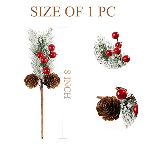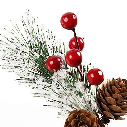 Famibay 24 Pack Christmas Greenery Picks Frosted Red Berry Stems with Pine Cones Small Artificial Pine Branches…